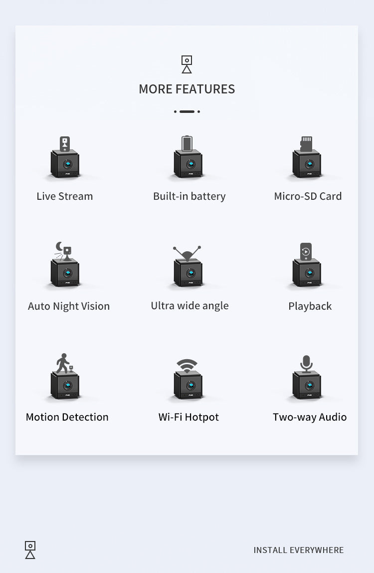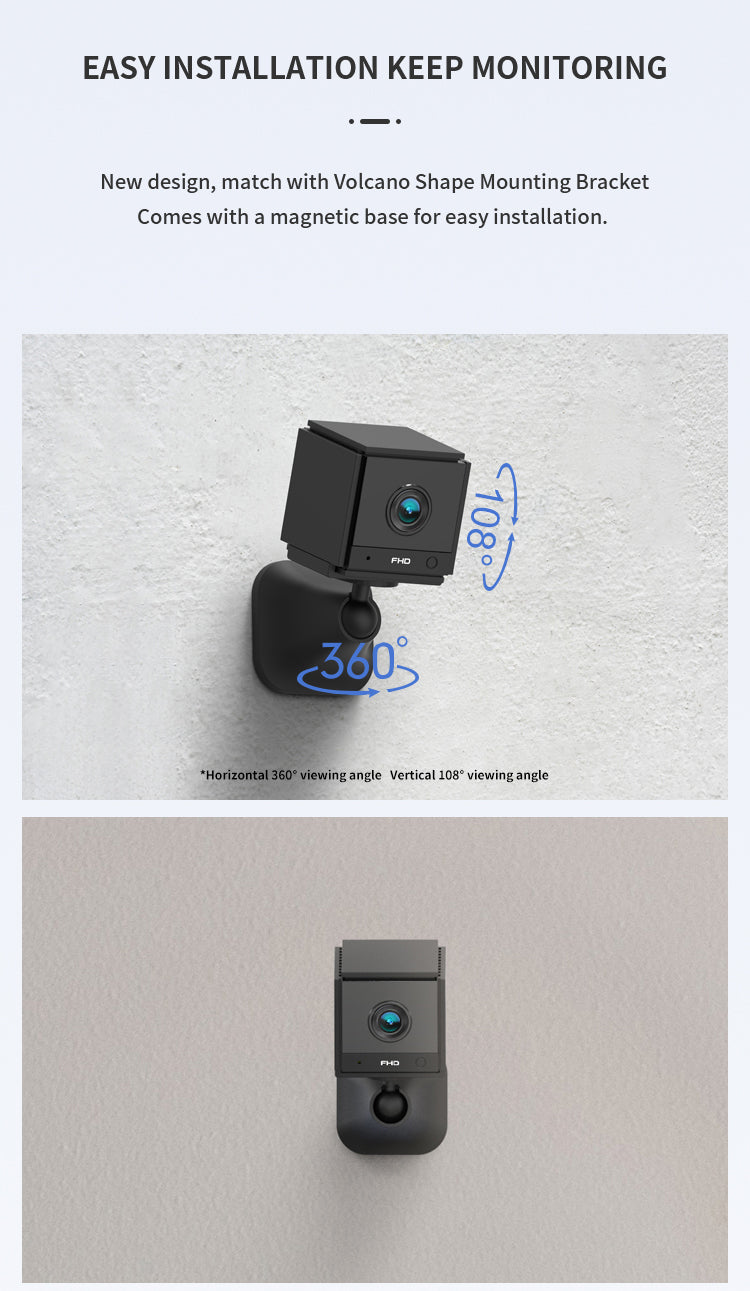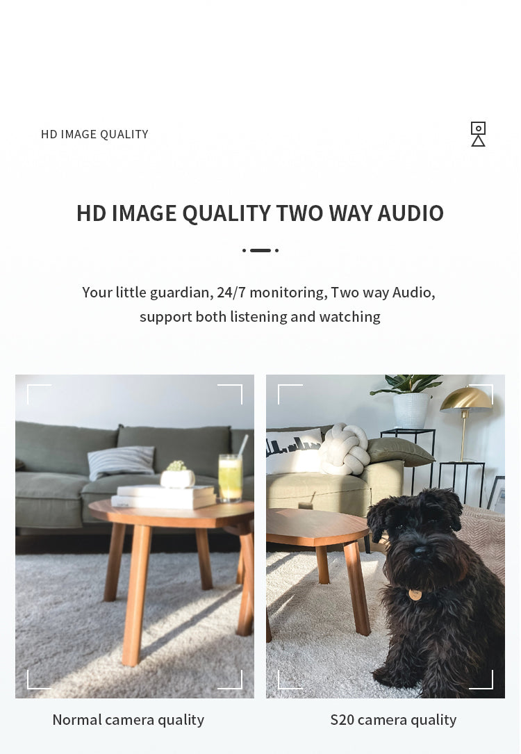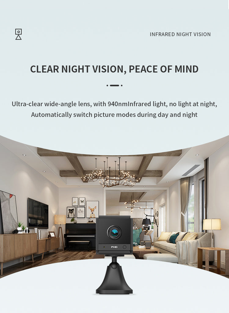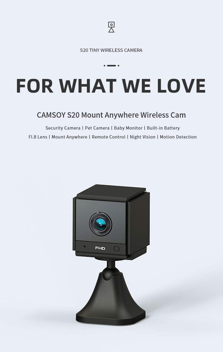 Camsoy S20 Black Mini Compact Security Camera Two Way Talk Motion Detection Alarm Battery Camera